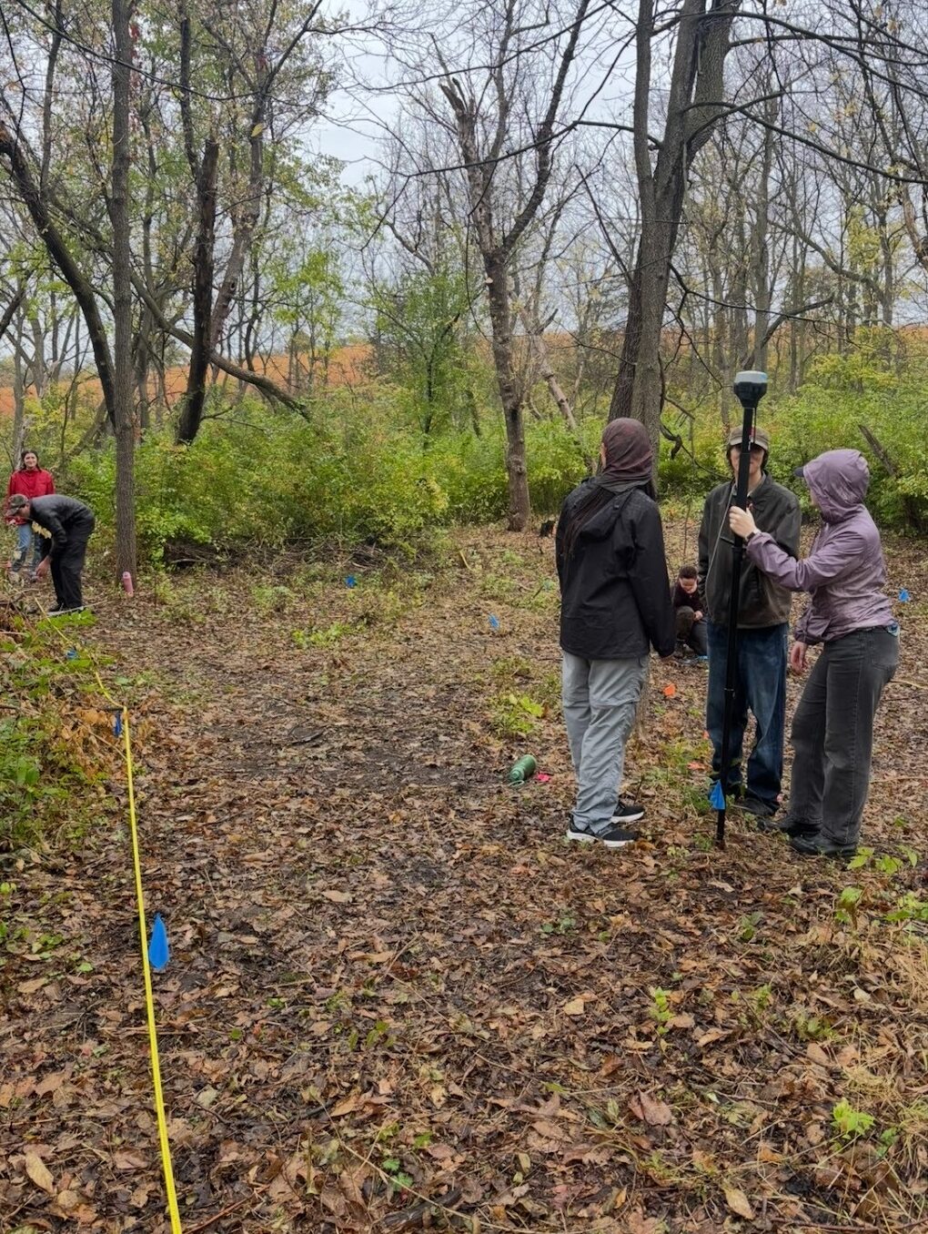 In addition to providing us with experience practicing pedestrian archaeological survey, this lab also equipped us with technological skills that professional archaeologists use every day in their work. If our team decided a find was a feature, artifact, or ecofact, team members took turns recording it in the ArcGIS app, giving a short description of the find and marking its location. After completing the survey in the Arb, we returned to our classroom and continued getting comfortable with ArcGIS. We practiced making maps that visually represented different information, focusing on the “Points_2025” and “Survey_grids_2025” layers. The following sections will elaborate on our finds, provide evidence and context through the maps we created, and reflect on our first experience carrying out archaeological research.