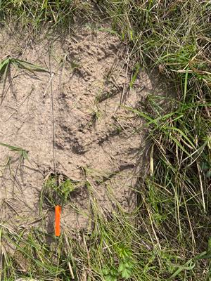 In Figure 5 below, we can see that the majority of the tire marks were in Grid 2, with only two in Grid 1 and one in Grid 3. This could be an indication of a few things. On one hand, our data could be completely accurate, revealing that the tractor was most frequently used in Grid 3. Though unlikely, an answer for this strange pattern could be that the farmer driving the tractor only drove through Grid 3, or covered each grid at a different time. Either of these possibilities would logically lead to the high concentration of tire tracks in a singular area that we noticed. On the other hand, this distribution could also very well be the product of some groups failing to recognize what the impressions looked like. Differing levels of visibility due to length of grass might have also impeded surveyors from flagging the impressions. Identifying whether the pattern is tied to the farmer’s activity or our class’ oversight would require a more detailed analysis than our data offers.