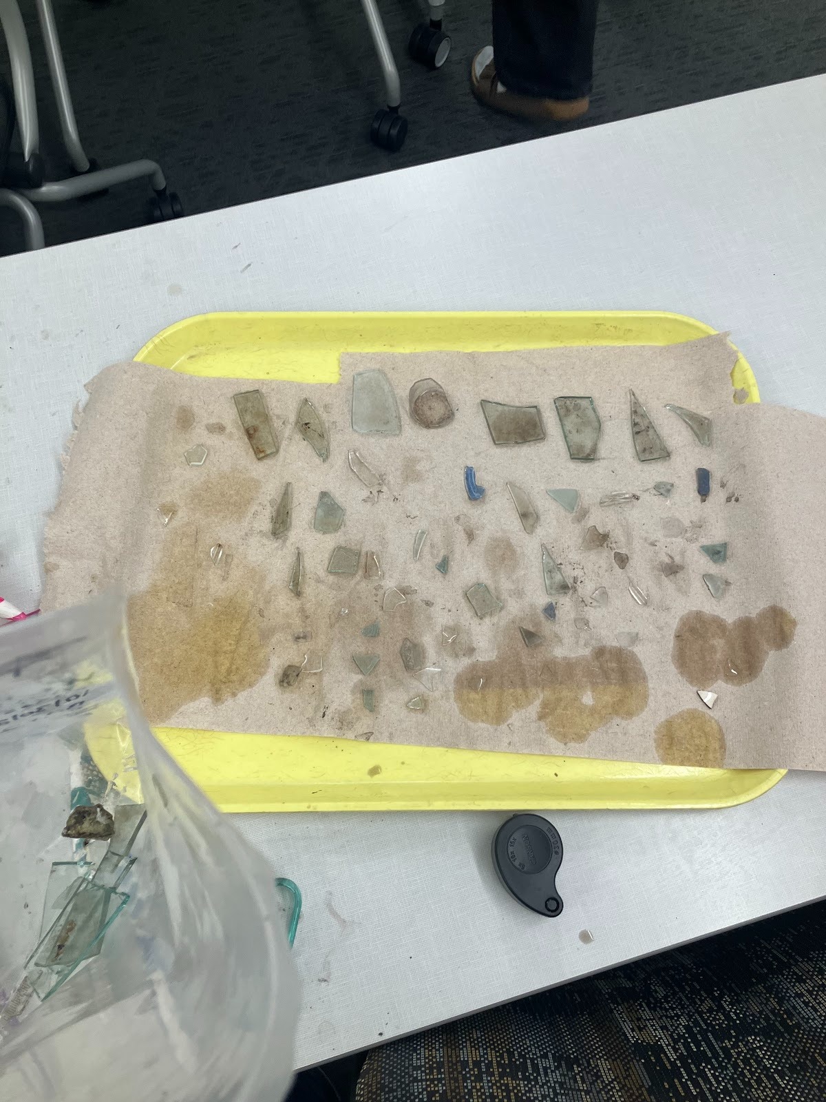 Although some artifacts, such as the assorted keys and decorative window glass, were more difficult to interpret, their analysis underscored an important part of archaeological practice: developing multiple working hypotheses when material evidence is ambiguous. The glass, for instance, may represent large-scale disposal events, artistic or institutional reuse, or simple household dumping, possibilities that require future investigation. Overall, the lab strengthened our understanding of how classification, careful observation, and comparative standards work together to transform scattered fragments into meaningful insights about a site’s history and use.