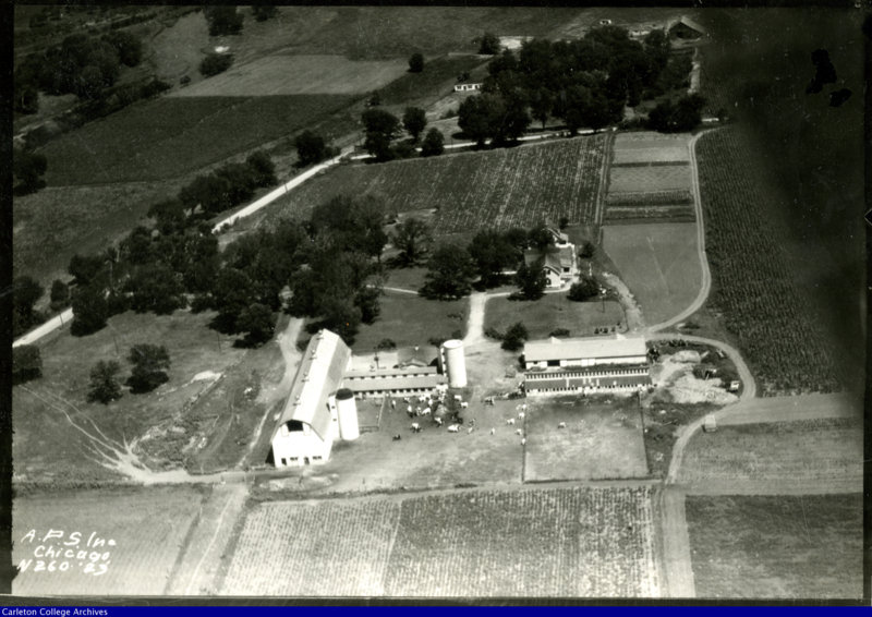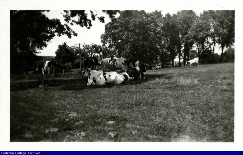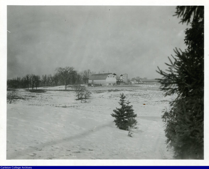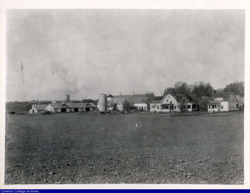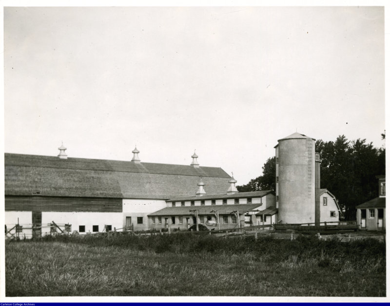 In the town of cows, colleges, and contentment, cows and Carleton College once operated hand-in-hand. Classmate Clarissa Smith found that the Carleton Farm dates back to 1914 and provided milk, meat, employment, and experiential education opportunities for several decades. In the 1920s, the College built an on-site residence––now known as Farm House––for farm workers. But the farm did not run like butter, as the idiom goes. According to The Carletonian, the farm’s barn was destroyed in a 1926 fire, thought to have been caused by “defective wiring.”1 Adjusted for inflation, the $40,000 damage at the time would translate to almost $550,000 today.2 Fortunately, the College opened a new barn with fire protections,3 as well as a nearby water tank for further support,4 in 1928. Challenges with the farm returned in 1930 when unpasteurized milk from the farm caused a polio outbreak on campus, resulting in the deaths of two Carleton students. As a result, the farm began to send its milk to a nearby pasteurization provider before reaching the dining halls. Ultimately, the farm functioned as a laboratory, even if many of its experiments failed. Though the College hoped to use the farm as a means of work-study financial aid, and as a living classroom for agricultural biology, neither initiative worked out in the end.5 Nevertheless, the farm supplied the campus with pasteurized butter, cream, and milk through its later years,6 producing 300 gallons of milk in its heyday.7 The farm ceased operations upon auctioning off its herd of 110 Holsteins in 1964.8
