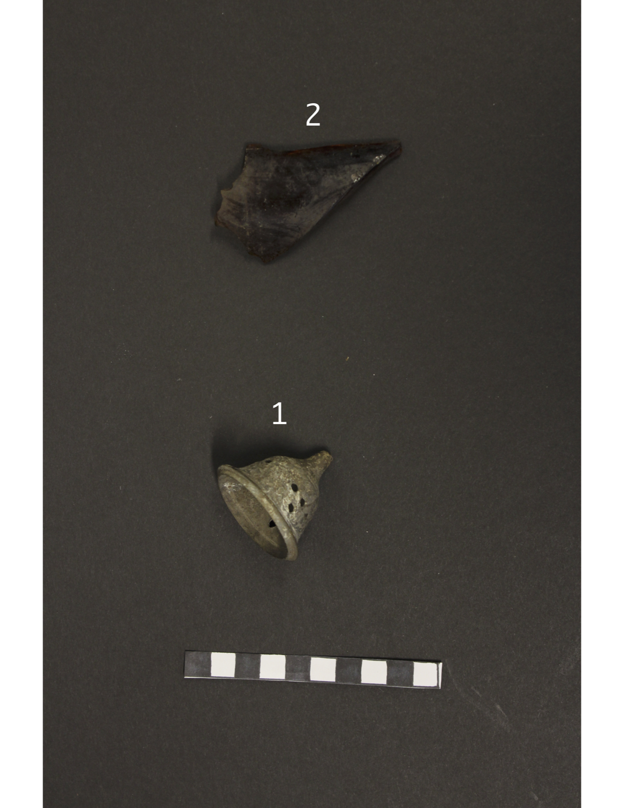 The bits of flowerpot and glass found in SU-B3, where the patio/porch of the cabin was located, suggest that this was a place that people used to decorate and gather on to enjoy beverages. SU-C1 contained a lot of charcoal and numerous shards of a glass window. This was probably some sort of dumping ground a small distance away from the cabin, though the charcoal could also be more modern in origin. It is possible that fires have been held at the site after the demolition of the cabin. SU-C3 also has a lot of similar looking shards of glass, perhaps from a shattered window at the time of the cabin’s demolition. The metal spoon and mug sherd indicate that this might have been where the kitchen was. Both kitchen related materials were dated to near the end of the cabin’s existence.