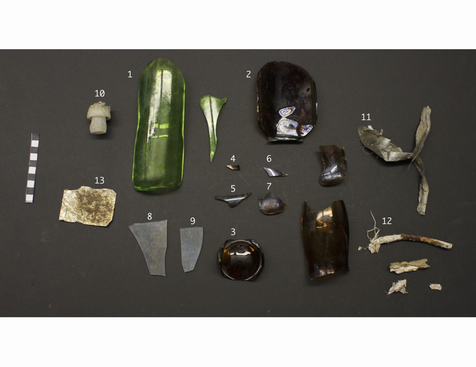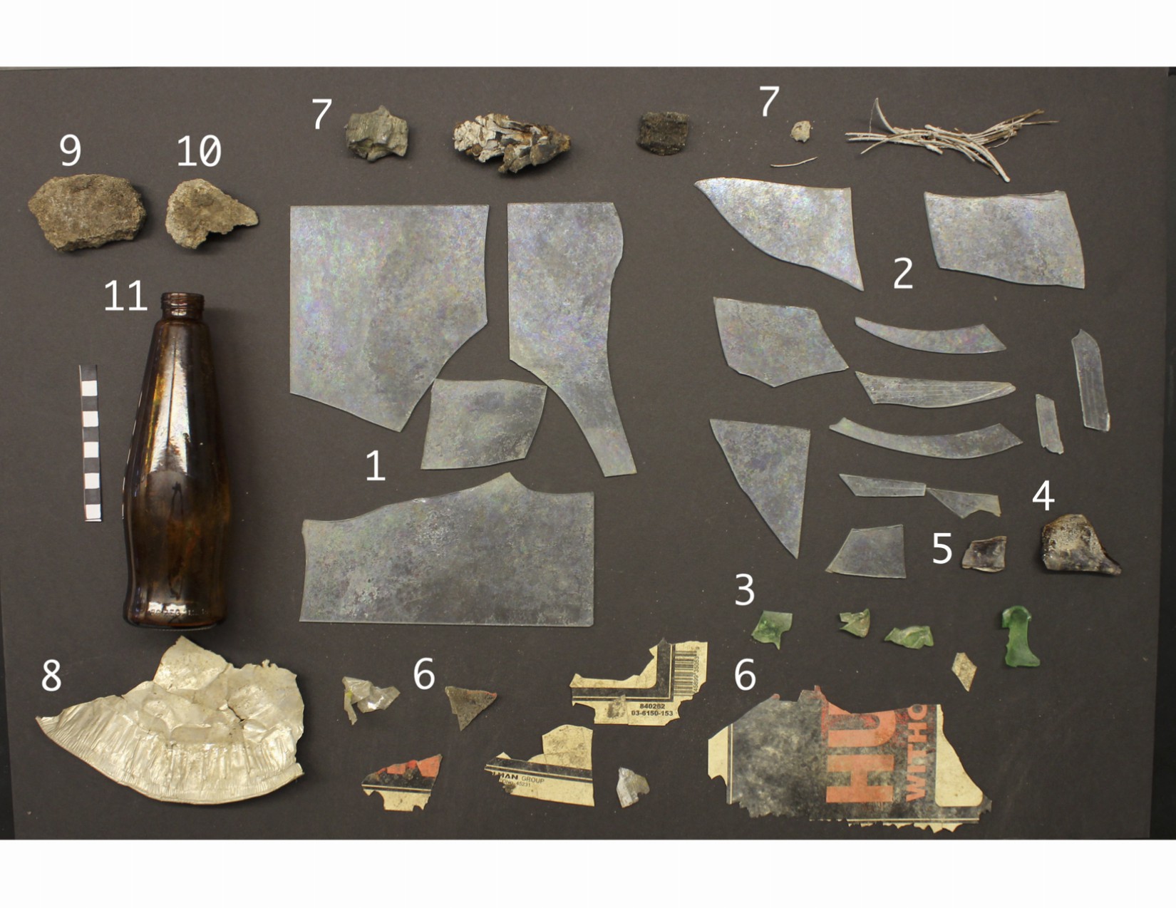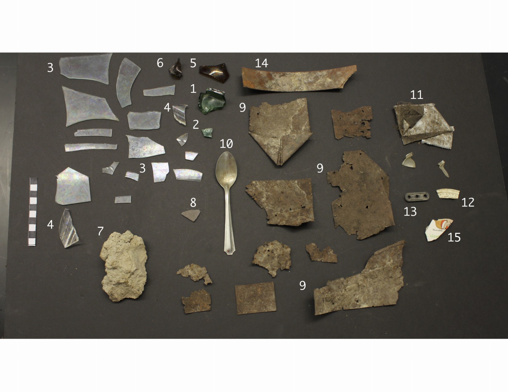 Below are pictures of the all materials collected from the WLC survey units. Note that not all materials were collected, but below represents a good variety of the materials found. For a more in depth look at some of the artifacts, visit the Object Biographies page.
